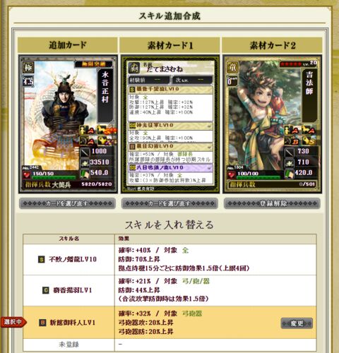 特殊候補がワイとは無縁の国津破邪ノ楯に 変わってしまうということで、 よく考えたらまったく使ってなかった 天限政宗をエサに最近引いた水谷正村に自マネを付与。 勝ち確のポチリッ 本丸防衛陣形は今こんな感じだけど 1列目:本願寺マネ 2列目:そーりんマ…