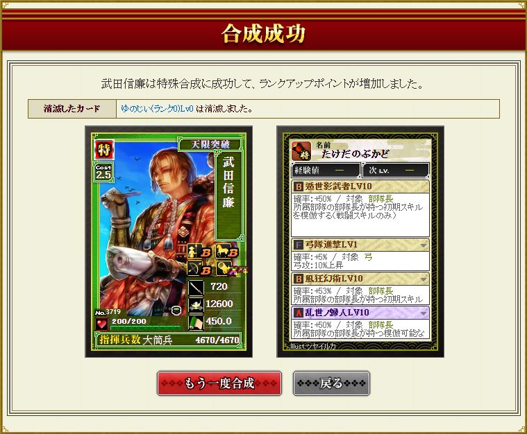 2022-07-01 タナボタGETゆのじいの使い道 ゲーム 戦国IXA 歴史 娯楽 クレーム殺到(?)で、まさかのゆのじいゲット( ゚∀゚)o彡゜ ならば使うのはやはり五男坊! 飛ばずにゼニをマネ続けるのだw 戦国IXA(イクサ)ランキング