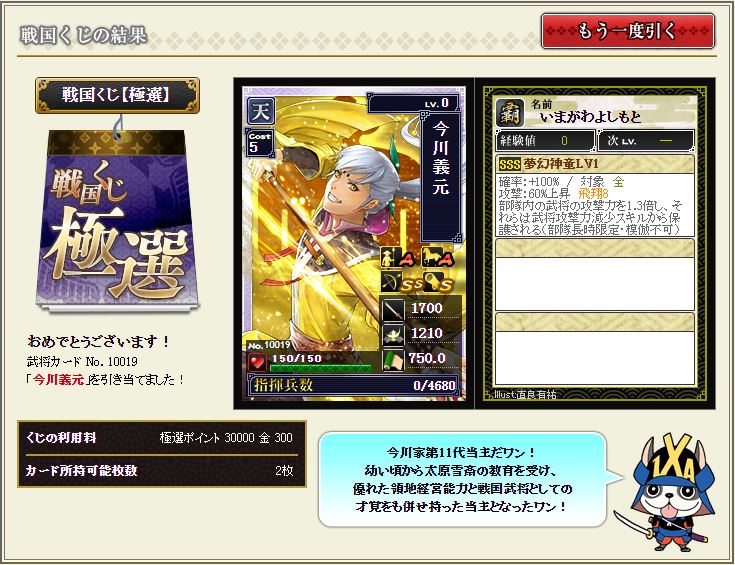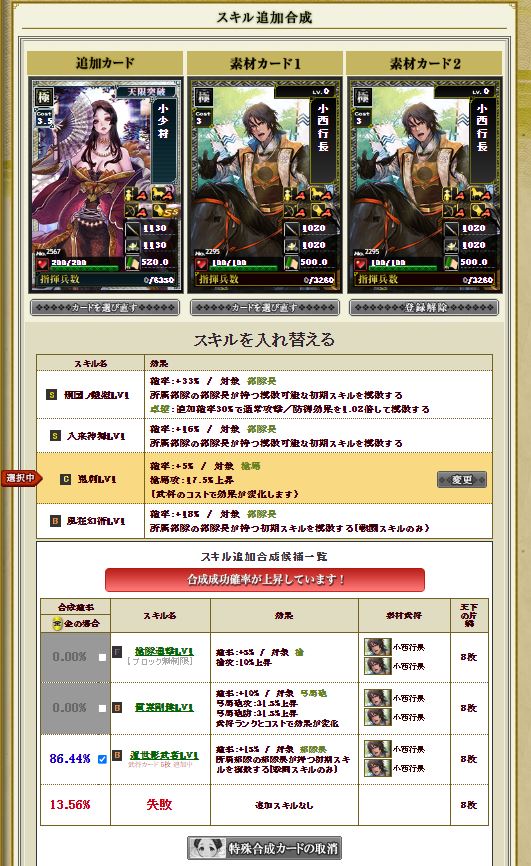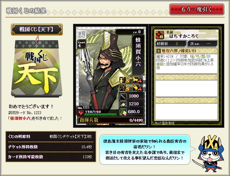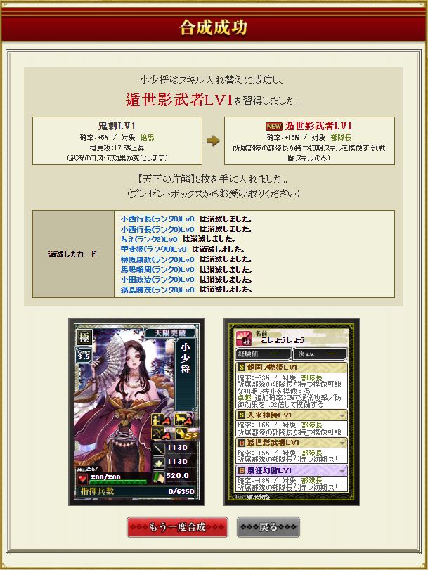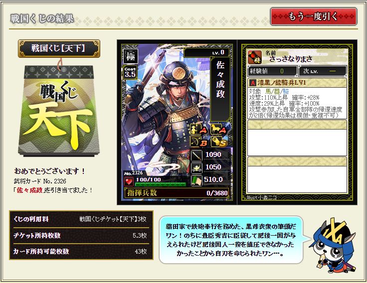 戦国くじ【記念】で引いた小少将にはマネを付けていく。