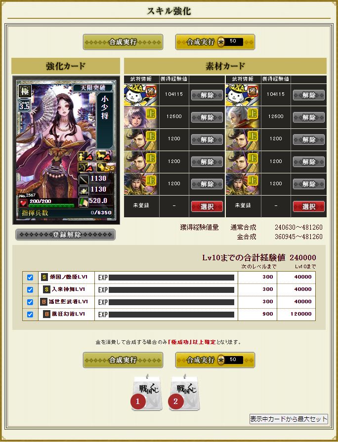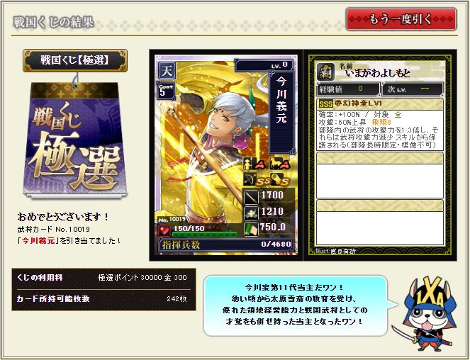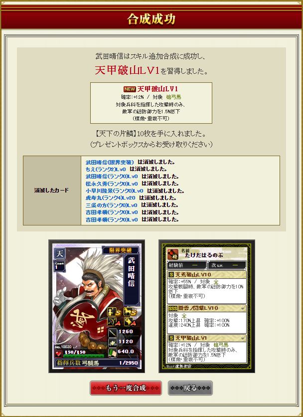 最近、4枚あったデバフ武田を素材で2枚溶かしてしまっていたので、