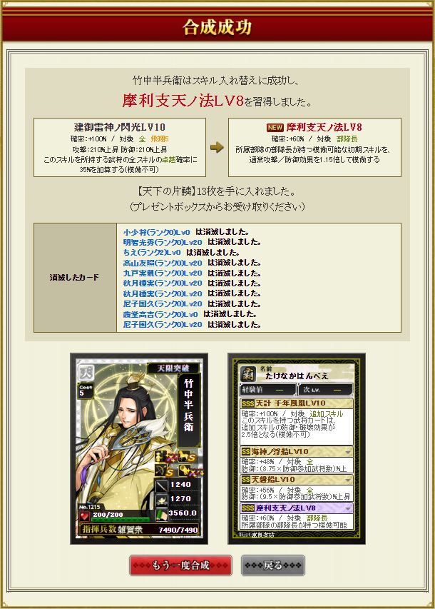 官兵衛が来ないせいで半兵衛に素材をつぎ込みすぎた結果完璧な1枚に仕上がったんだが。