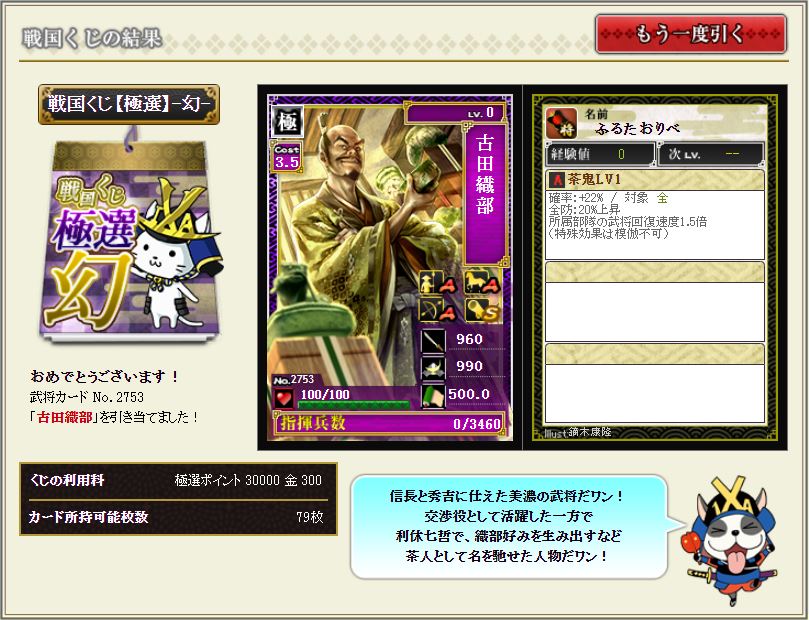 天百地は本丸で唯一ゴミスキルが付いていたこの人のこの枠を埋めて