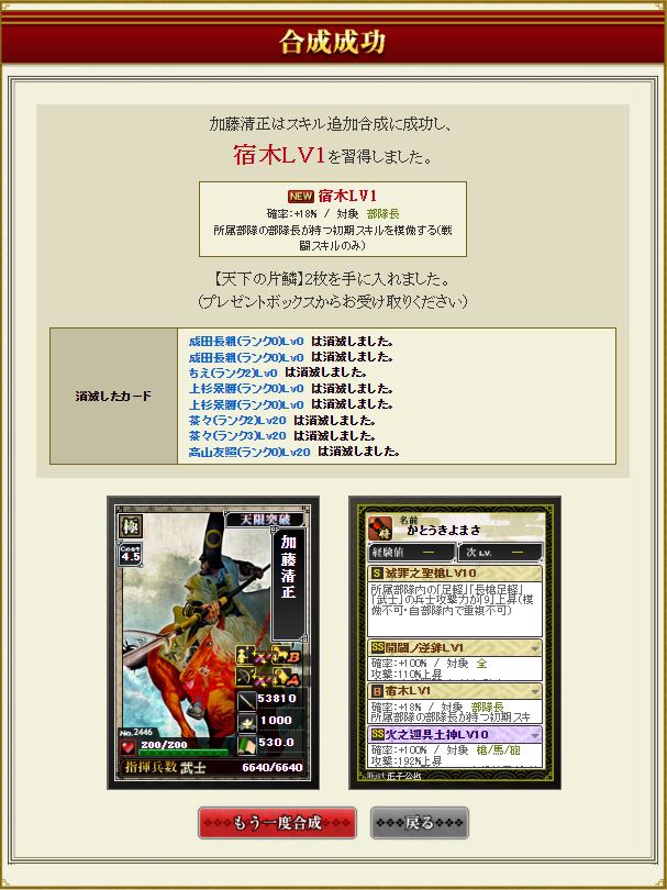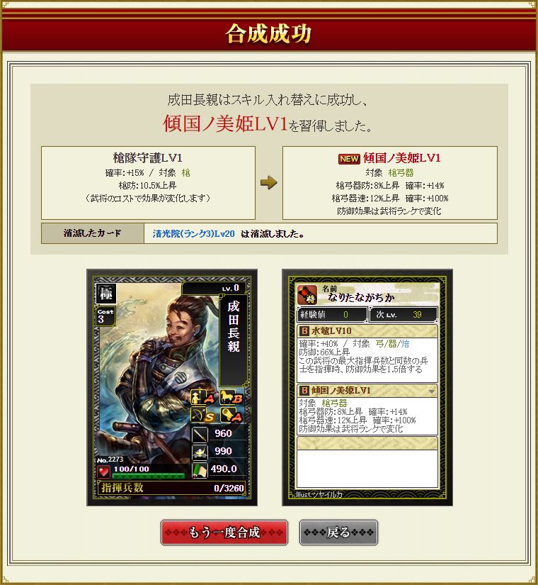 おまけの合成。放置してた槍攻撃力マシのこの人。