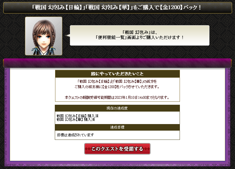 来年1月までゲット可能。