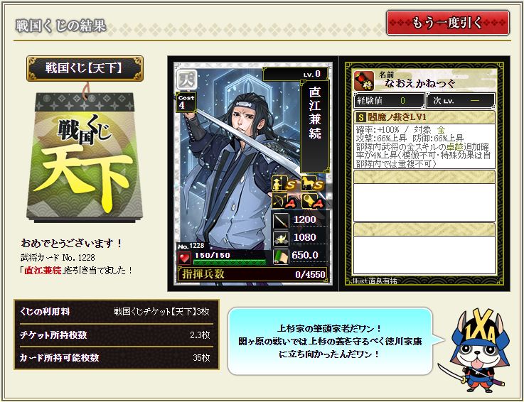 ちなみに尼子マネは持ってないのでナシ。皎月院は84%発動と心許ないw