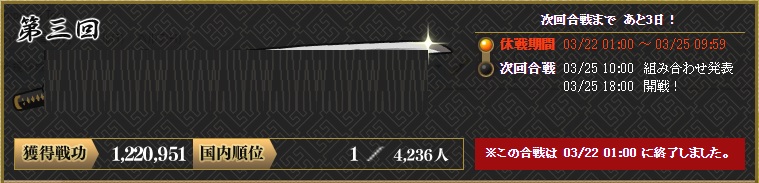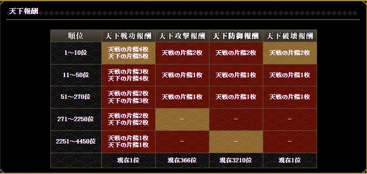 攻撃戦2戦連続天下筆頭という戦績でした^^