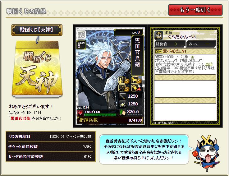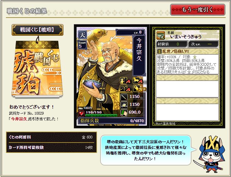 30分村焼いてりゃ戦功3~4万は得られるわけなので、
