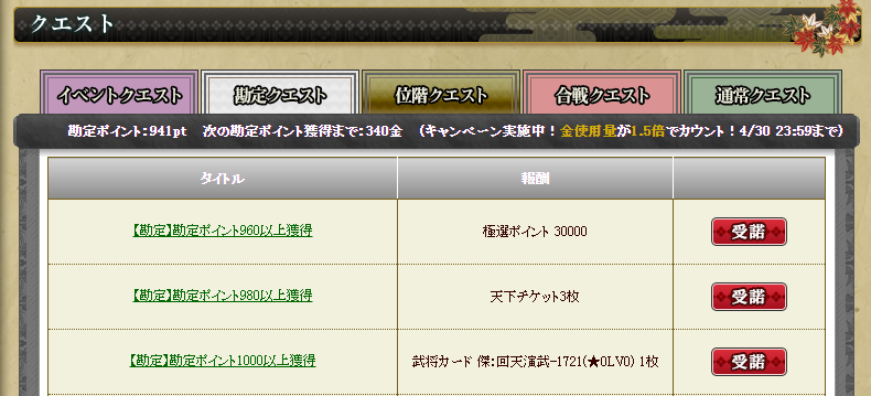 内政の進行や合戦回数による盟主陥落戦功によって、