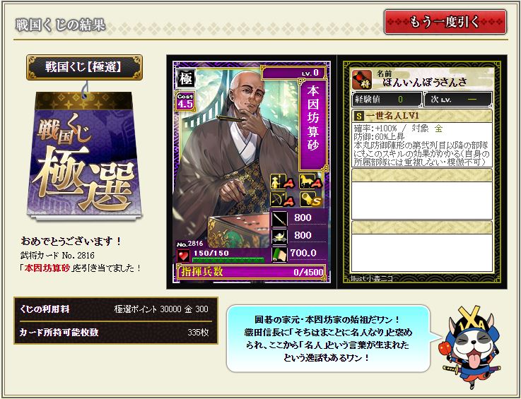 まずは本因坊1枚でサクっと茶人追加して、