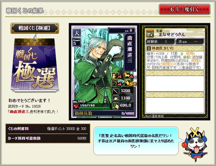 極の曲直瀬も2枚あるので使い道を考えてみた。