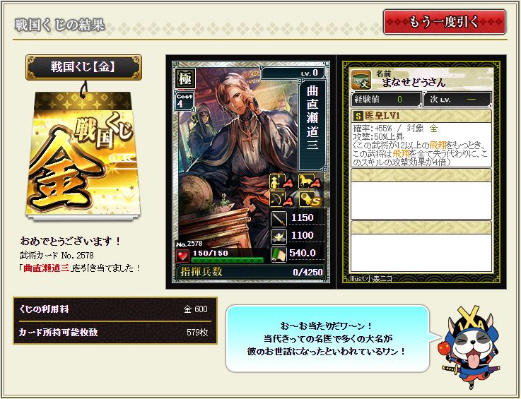 2枠目は曲直瀬2枚で確実に茶人を付けていく。