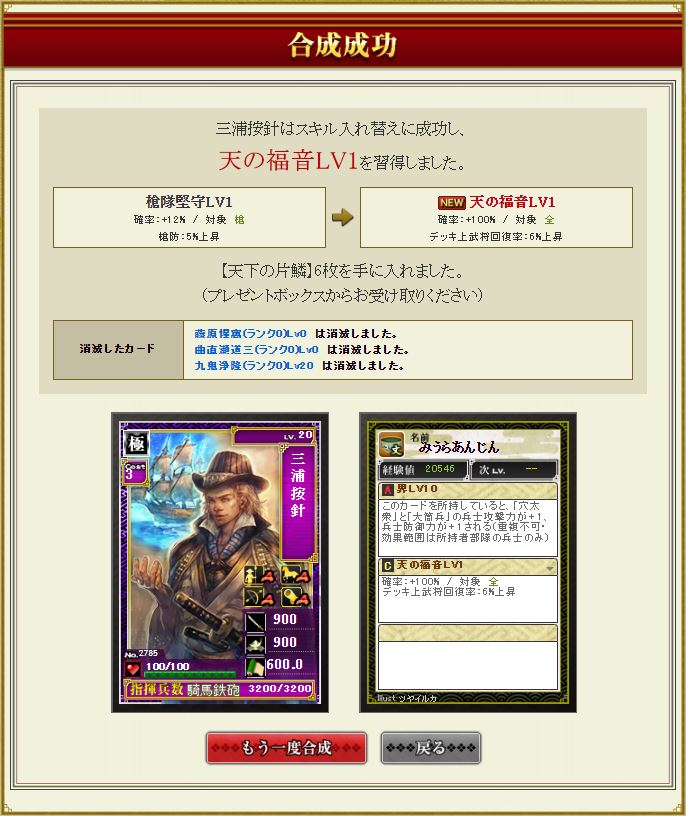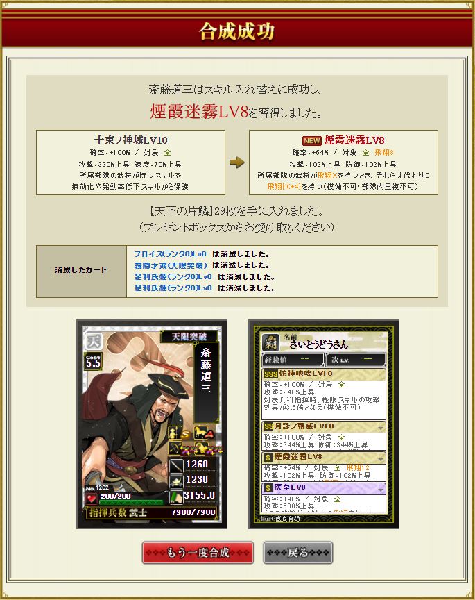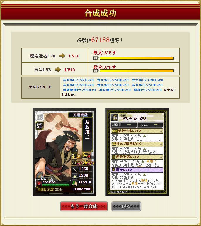 曲直瀬が止まらんのでさらに茶人合成を続けていく。