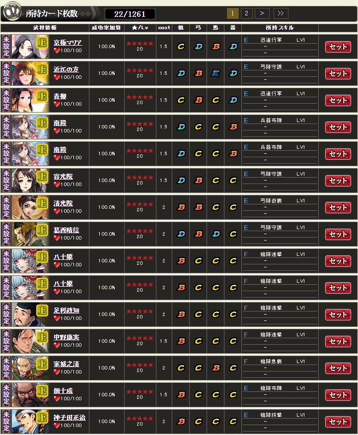 スキル追加素材の準備に溶かした後でスクショの22枚の★5が残った。