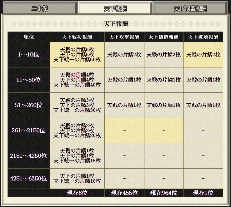 戦功が国筆頭、破壊Pが天下筆頭だった。