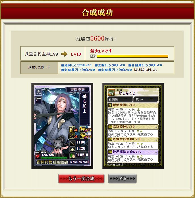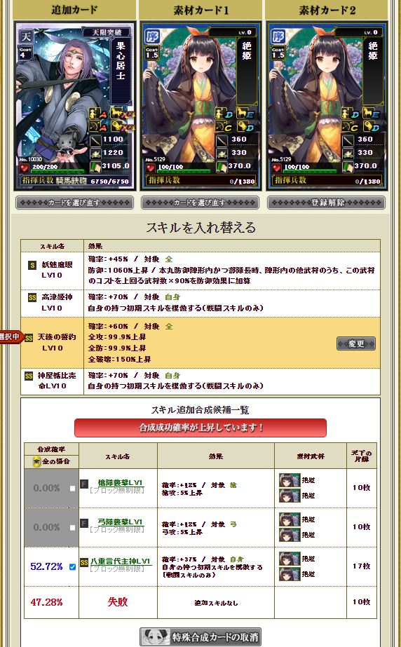 なお、この合成の前に天合成を3度ほど失敗させて不遇Pを貯めてある←