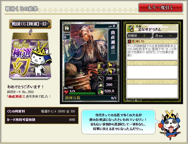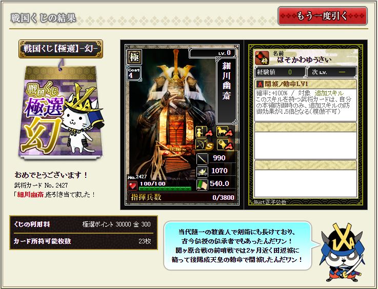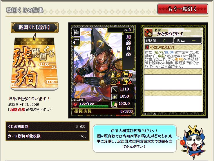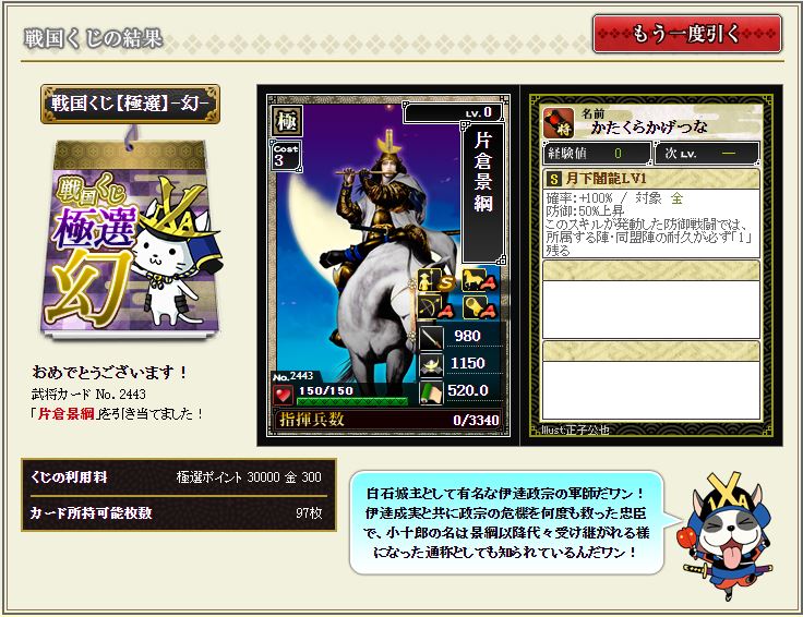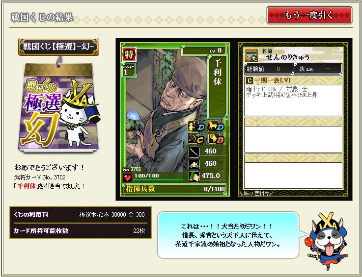 さて、今期も幻の武将大饗宴が来ましたね^^