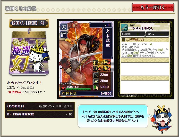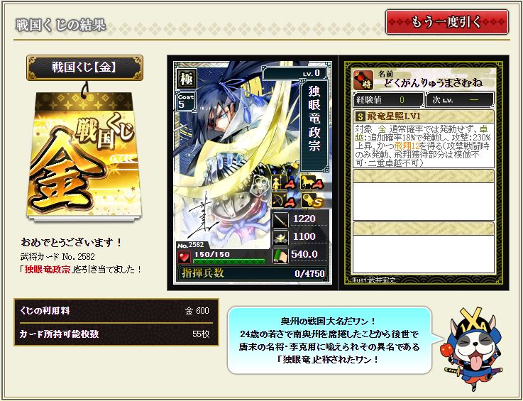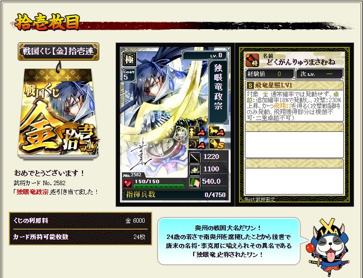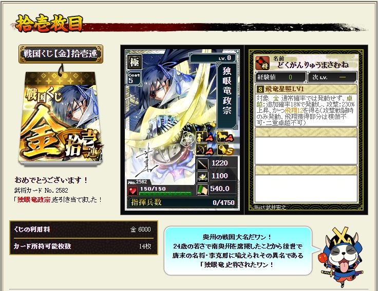 今回目玉の独眼竜政宗の下位互換。