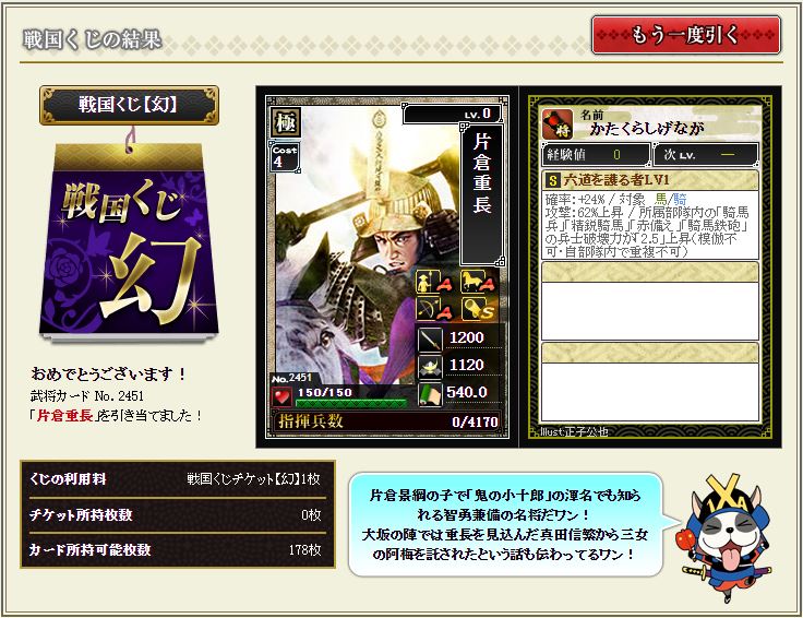 幻で引けた古の3倍枠武将のこの御方を育成。