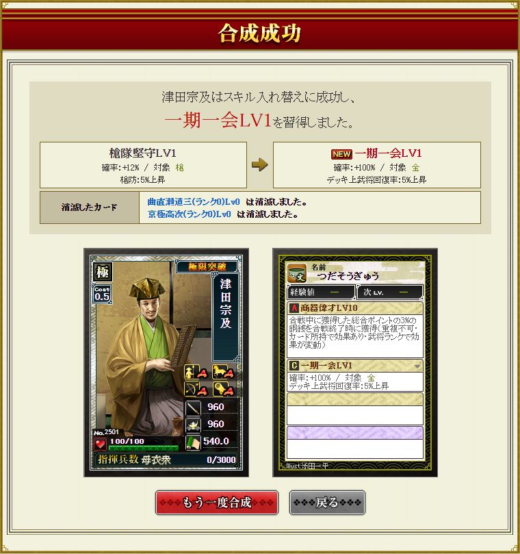 安心安全の100%茶人合成。戦力にならないカードがいつの間にかこいつだけになってた。