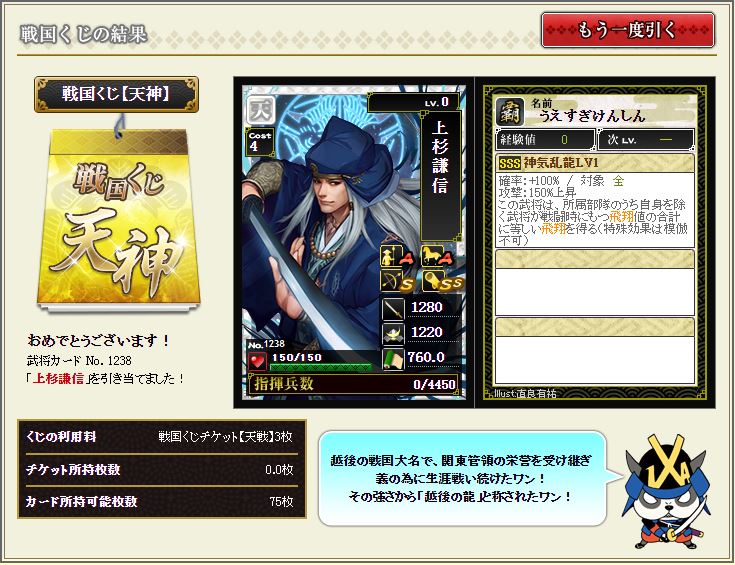 謙信がメイン鯖で出てたら育成モチベ上がったんだけどな。現状では塩漬け状態。
