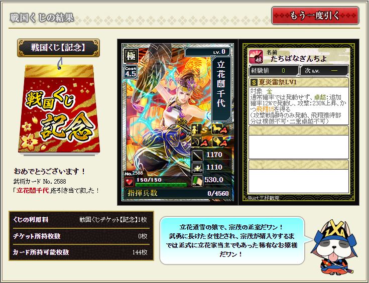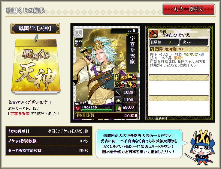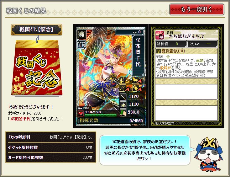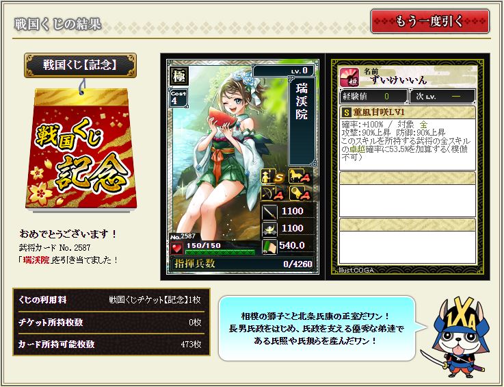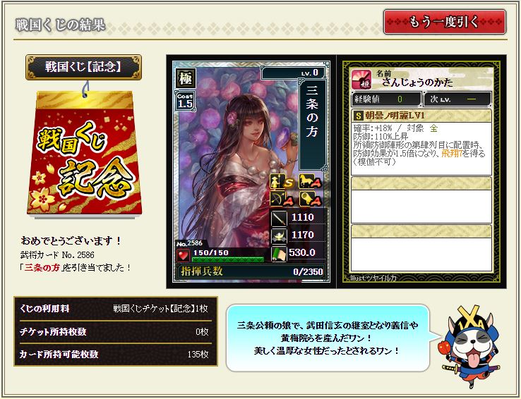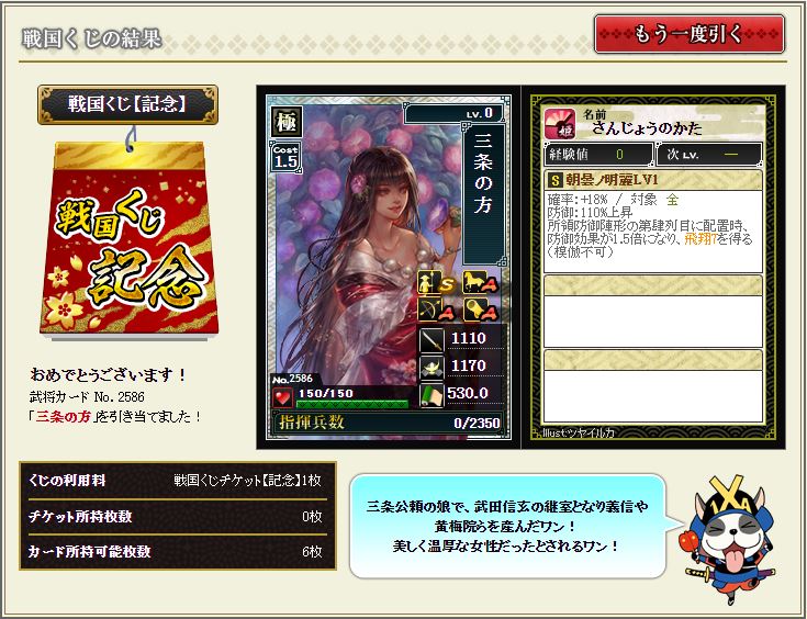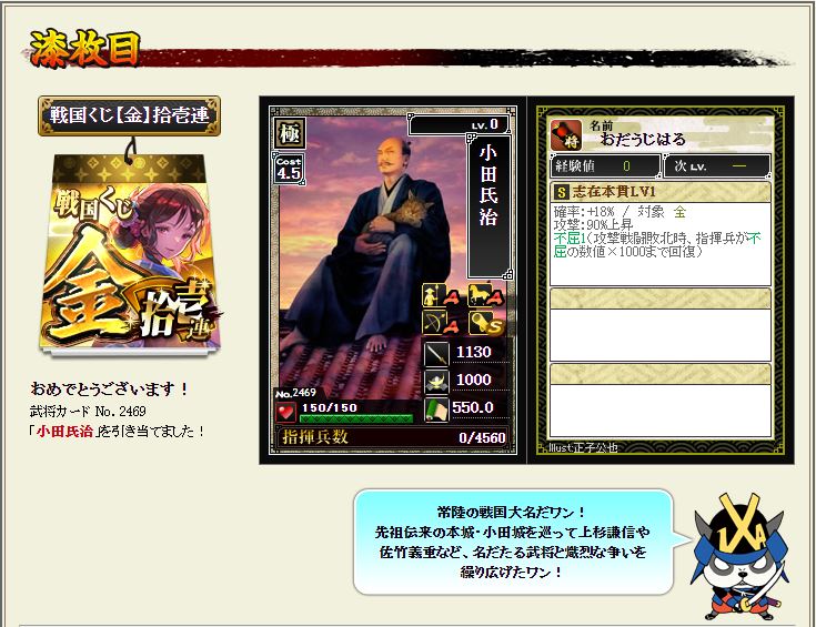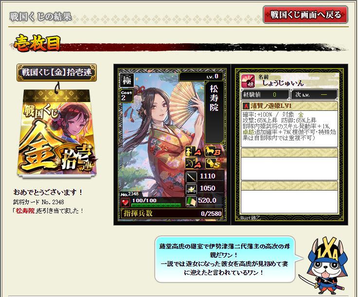 最近落ちない所領陣形を構築しているのだが、ちょうど欲しかったところへ降臨。シゴデキ女子さすてんっす。