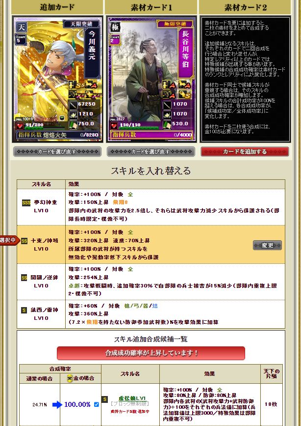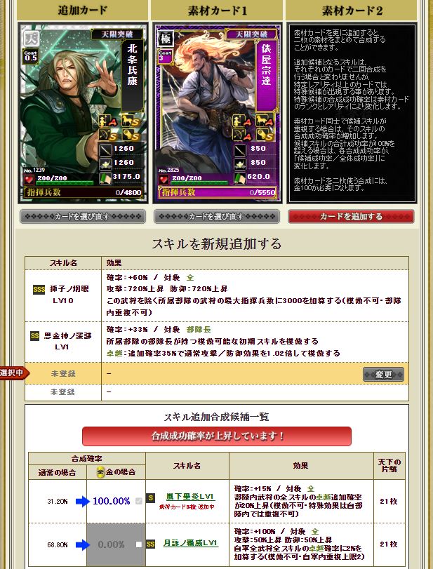 これで一緒に組んでいる1.24信長の初期スキル発動が94%から95%へw