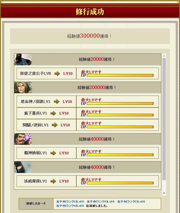 部隊に2名組み込めば4億は超えられるが、それ以上の領域へ踏み入るには傑かXスキルか飛翔謙信部隊を完成しないと、盟主戦での人数依存を除いては厳しい。そう考えると今期の覇は2枚とも「覇」としてしっかり主要な役割を果たしていると言える。