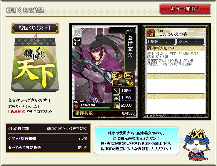 卓越ブーストが充実しすぎているので、武蔵の島穿鬼槍もおそらく確定発動できる。この部隊に関しては柳生の海神に神将火剣を追加したら完成かな。