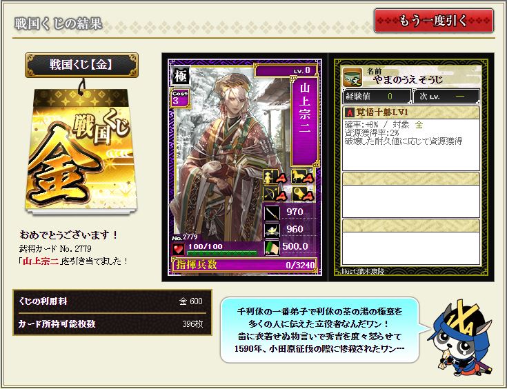 さて、金クジを回してると、幻とラインナップが連動している金クジの方で山上が降臨。