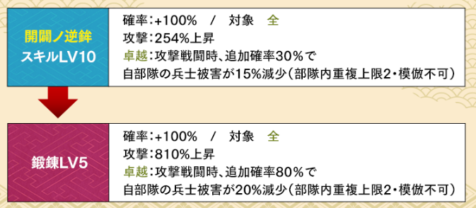 開闢も火力がアップし、兵士被害減少率や卓越発動率が改善される。