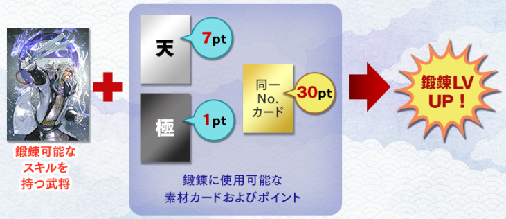 スキルLv10→鍛錬Lv5まで490ポイントを要することになり、天70枚相当となる。ゴミ極1枚で連打して当たればラッキーという、私が現在S2合成で行っているような方法が個人的にはオススメではないかと思う。
