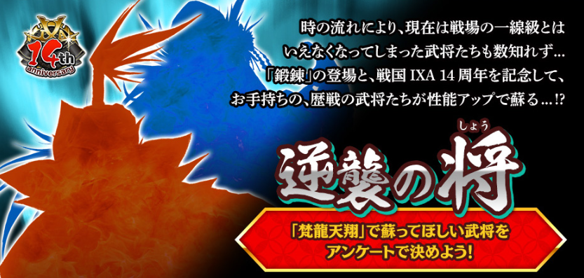 IXAにはガンダム世代が多いため迎合しているのだろうが、現在「逆襲の将(ショゥャア?)」という、鍛錬を持たせたい旧天を選ぶアンケートが実施されている。