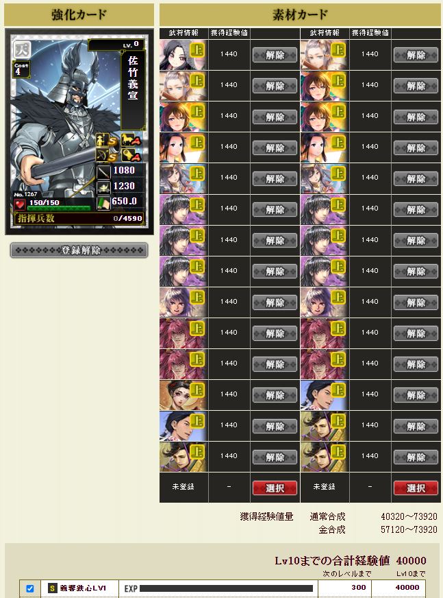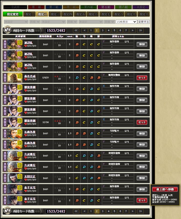 上と序の武将Lv20を抽出する設定。