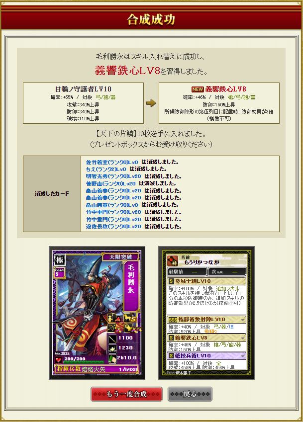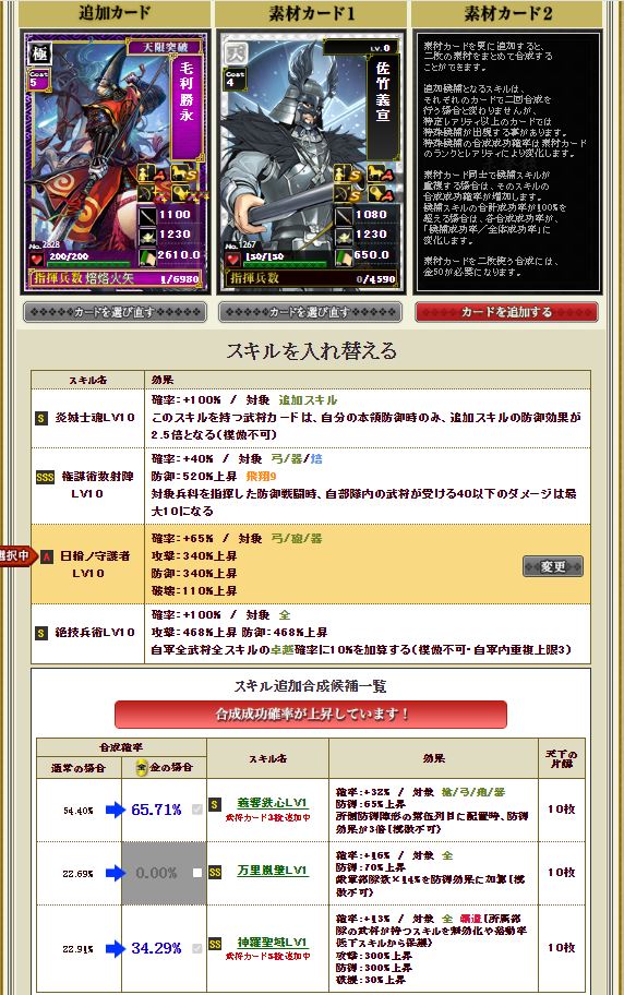 本丸防衛陣形5列目に配列時、防御効果3倍というニッチなスキル。