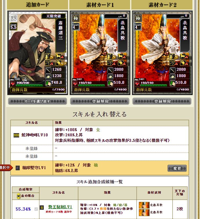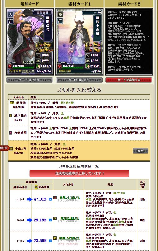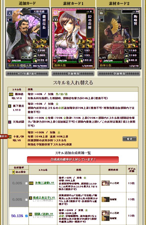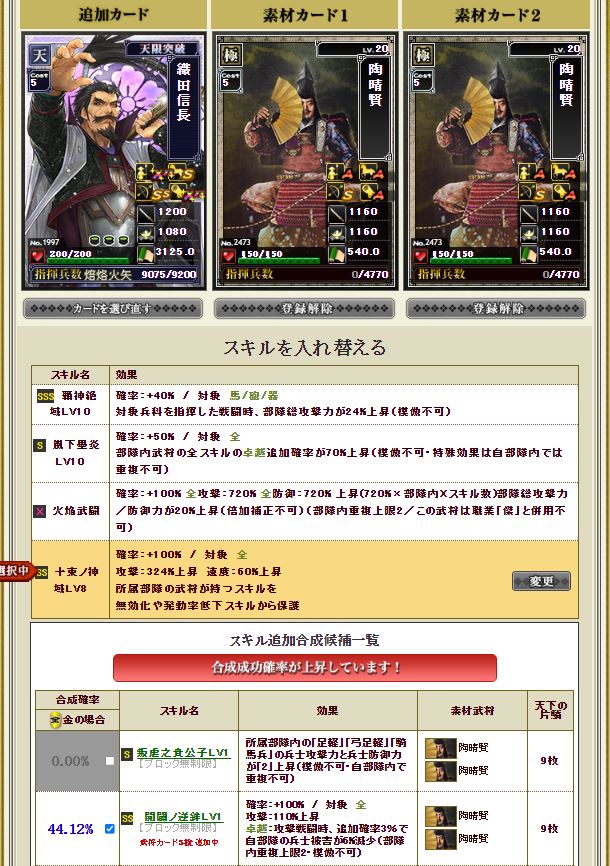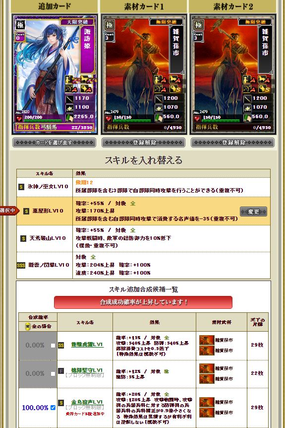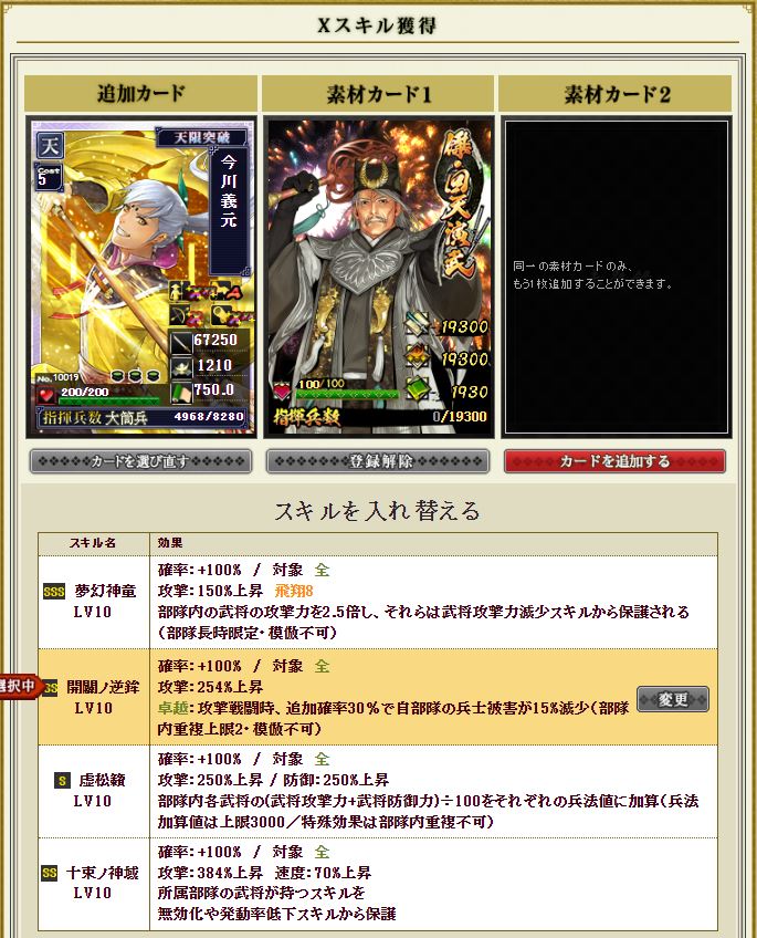まずは卓越スキルを確定発動させるための嵐下墨炎を追加。ここが一番緊張した。