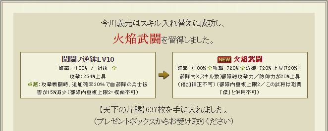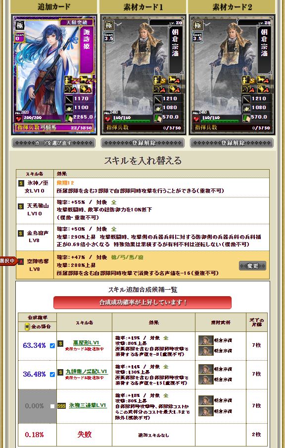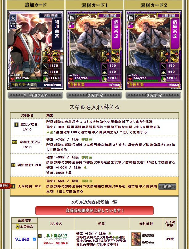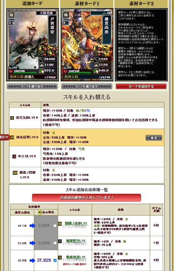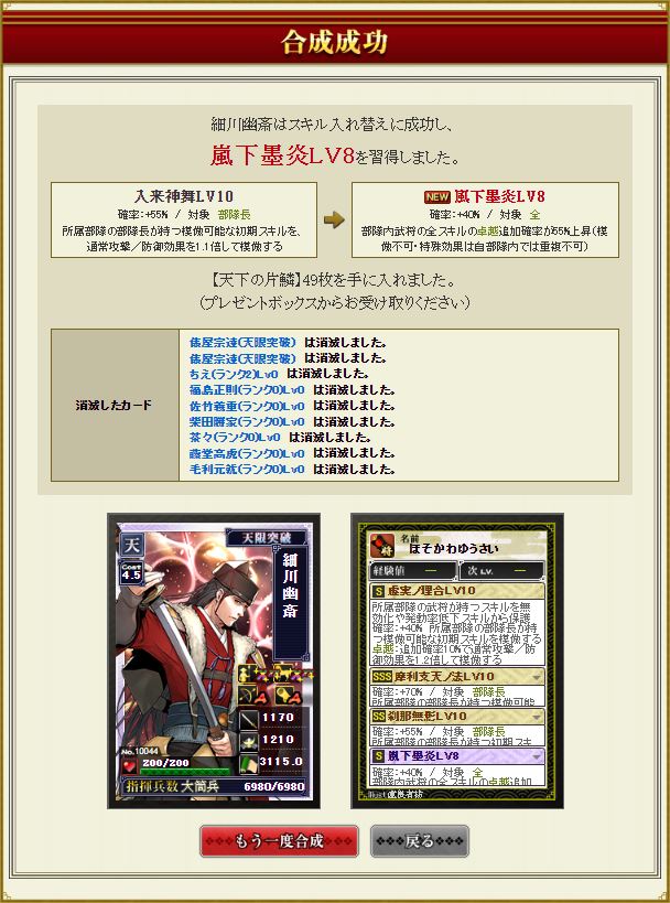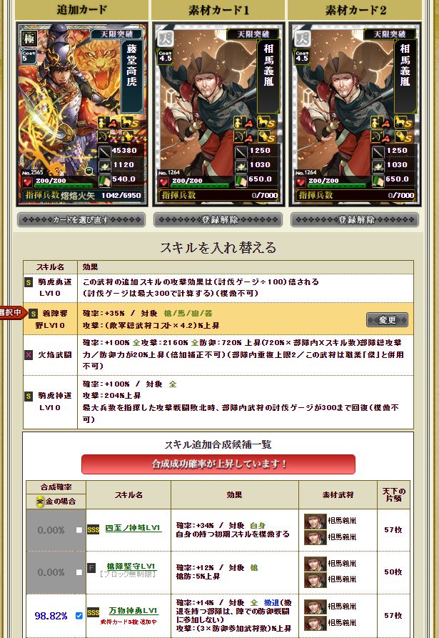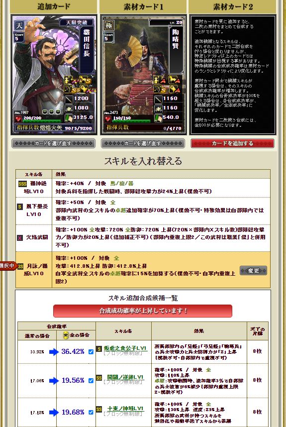 まずは卓越スキルを確定発動させるための嵐下墨炎を追加。ここが一番緊張した。