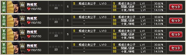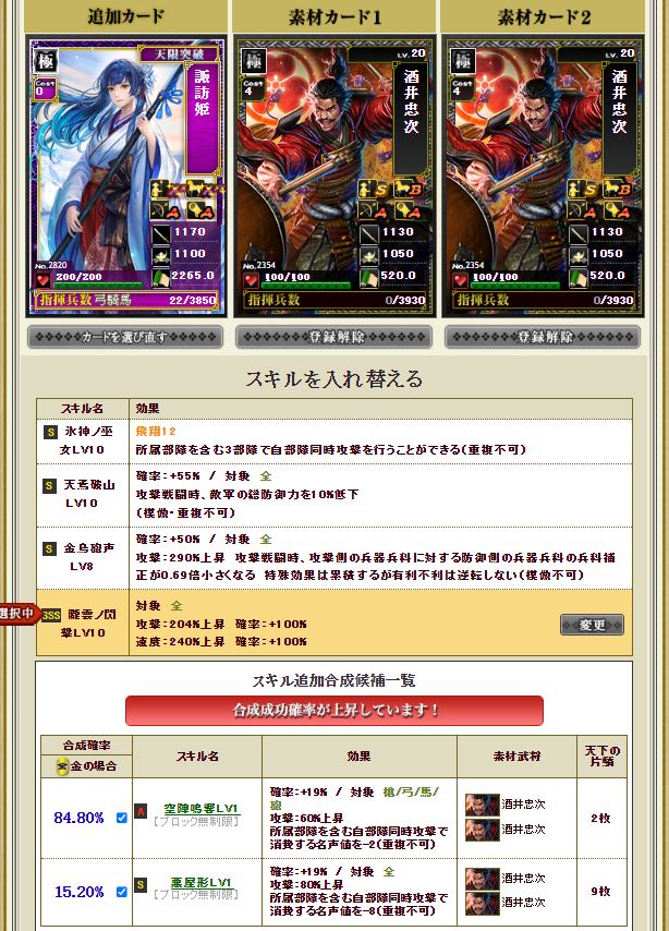 速度は和田部隊のスピードが採用されるので不要な諏訪姫の速度を、金烏追加時に消えた名声消費減へ付け替える。