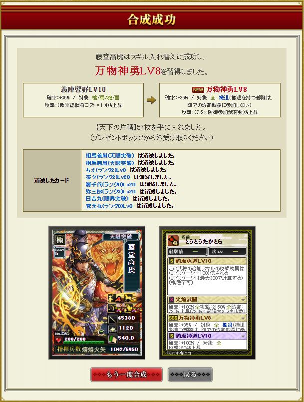 次に盟主戦用の3倍枠への万物神勇追加チャレンジ。