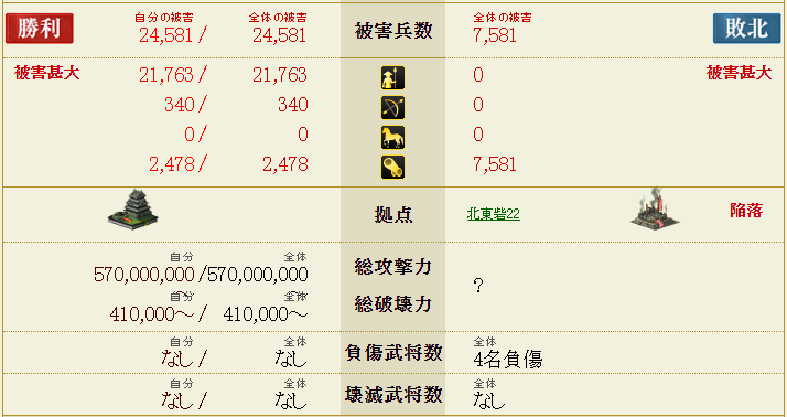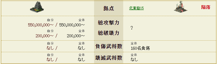 兵数は一撃で飛ばした砦や武将が飛ばずに落ちた砦がいくつもあって、特に生き残ってる砦で検証もしていないので、記載の数より兵数が多い砦ももしかしたらあるかもしれないので悪しからず。敵軍武将のスキルも表示されていなかったものはスルーしてる可能性アリです。ちなみに私は砦30までクリアしていません←オイw