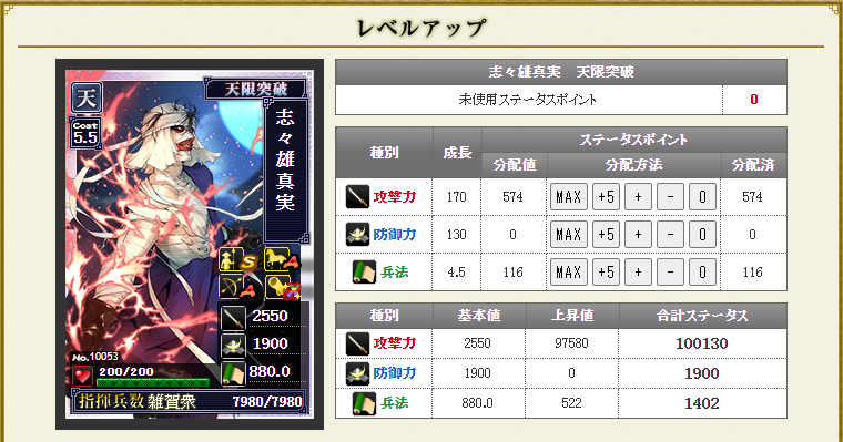 こうすると兵法値は4,405となり全武将中で最強となる。ほぼ誤差ですがw
