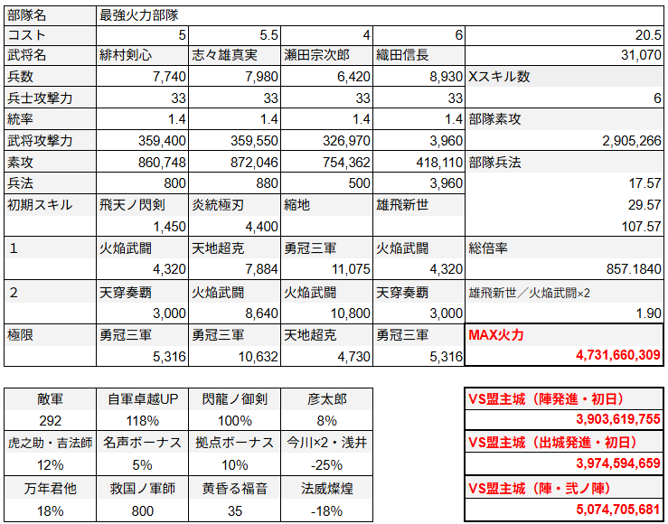 一応盟主戦仕様になっておりますので、弐ノ陣での火力という大幅なズルを込みではありますが、一部隊で50億の壁を超えました。